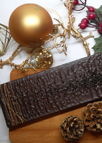 Ingredientes: Cobertura negra (64%)(habas de cacao, azúcar, emulgente (lecitina de soja), extracto natural de vainilla), cobertura de leche (leche en polvo), licor de turrón de avellanas y miel Roig, azúcar invertido, jarabe de glucosa, manteca, humectante (sorbitol), pasta de avellanas.